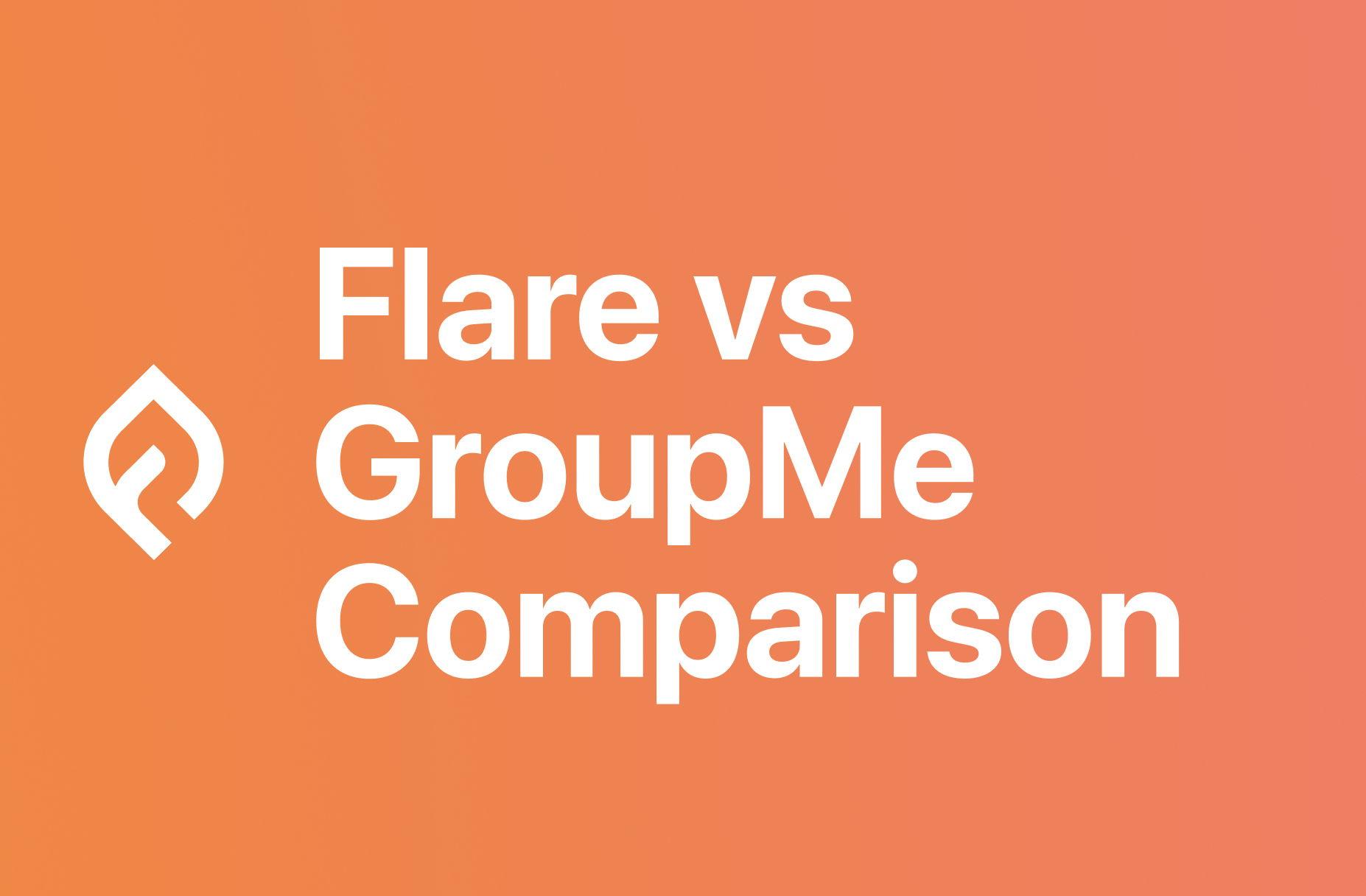 Compare Flare as the best group communications app to GroupMe for your organization's needs. Consider Flare as GroupMe plus so much more. Communicate with, plan for, and organize your team, group, organization, and friends all in one place. Flare is the best event management, group communications, and photo sharing app for college groups.